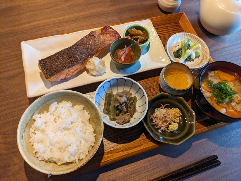 【画像】オープン当初、ランチタイムの鮭定食(3000円) レストラン内