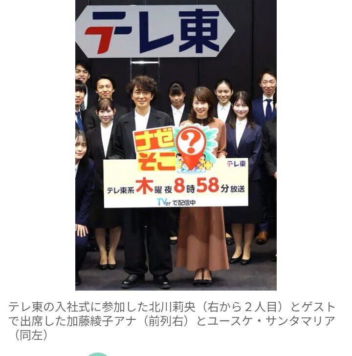 式には、同局系バラエティー「ナゼそこ?+」(木曜・後8時58分)でMCを務めるユースケ・サンタマリアと、加藤アナがサプライズで登場。誰が来るか知らされていなかった北川ら、テレビ東京グループの新入社員たちは、「おぉ~!」と驚きや、喜びの表情を見せていた。